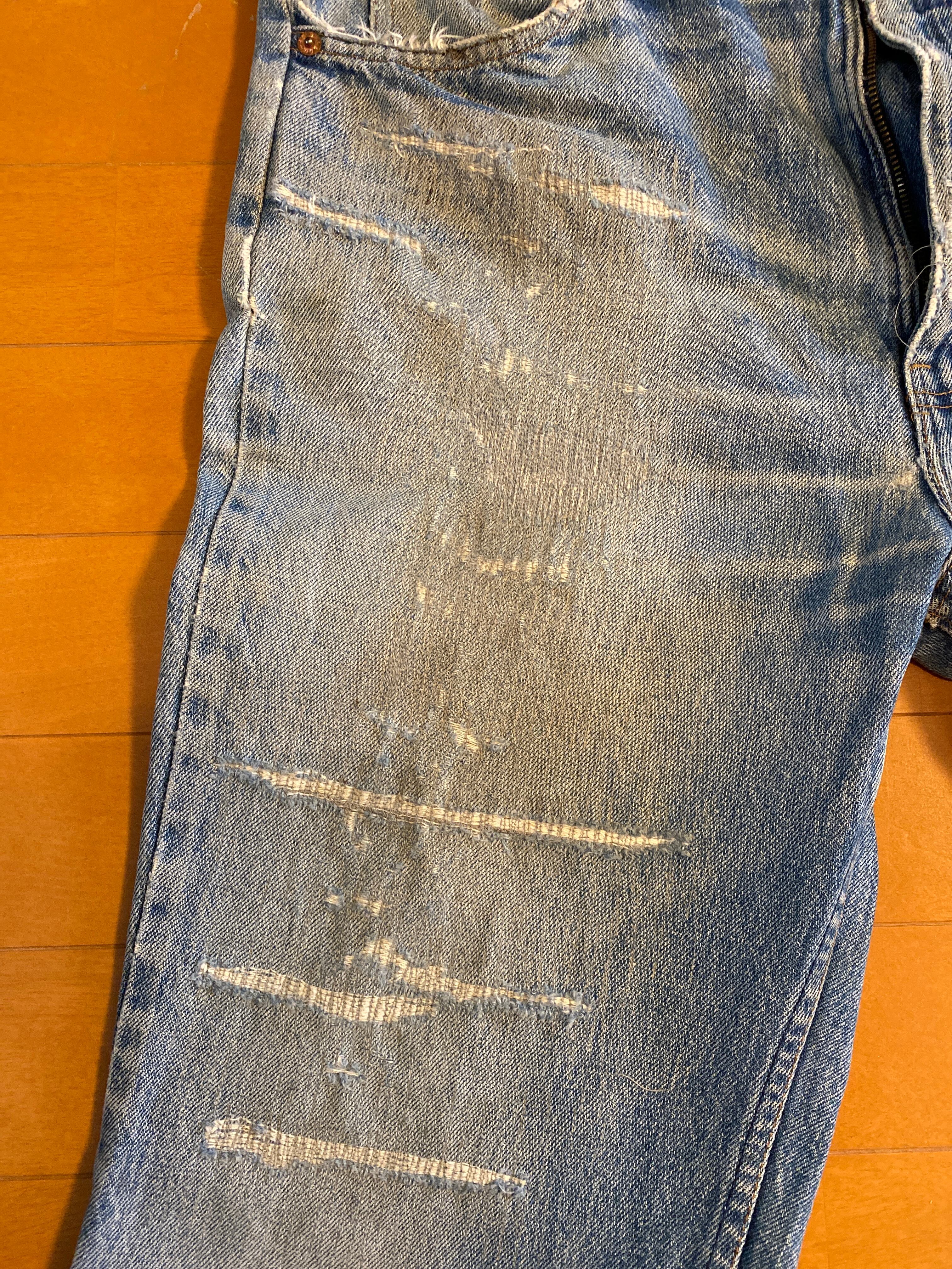 左右ももから膝、右うしろポケットにリペアがかけてあります。