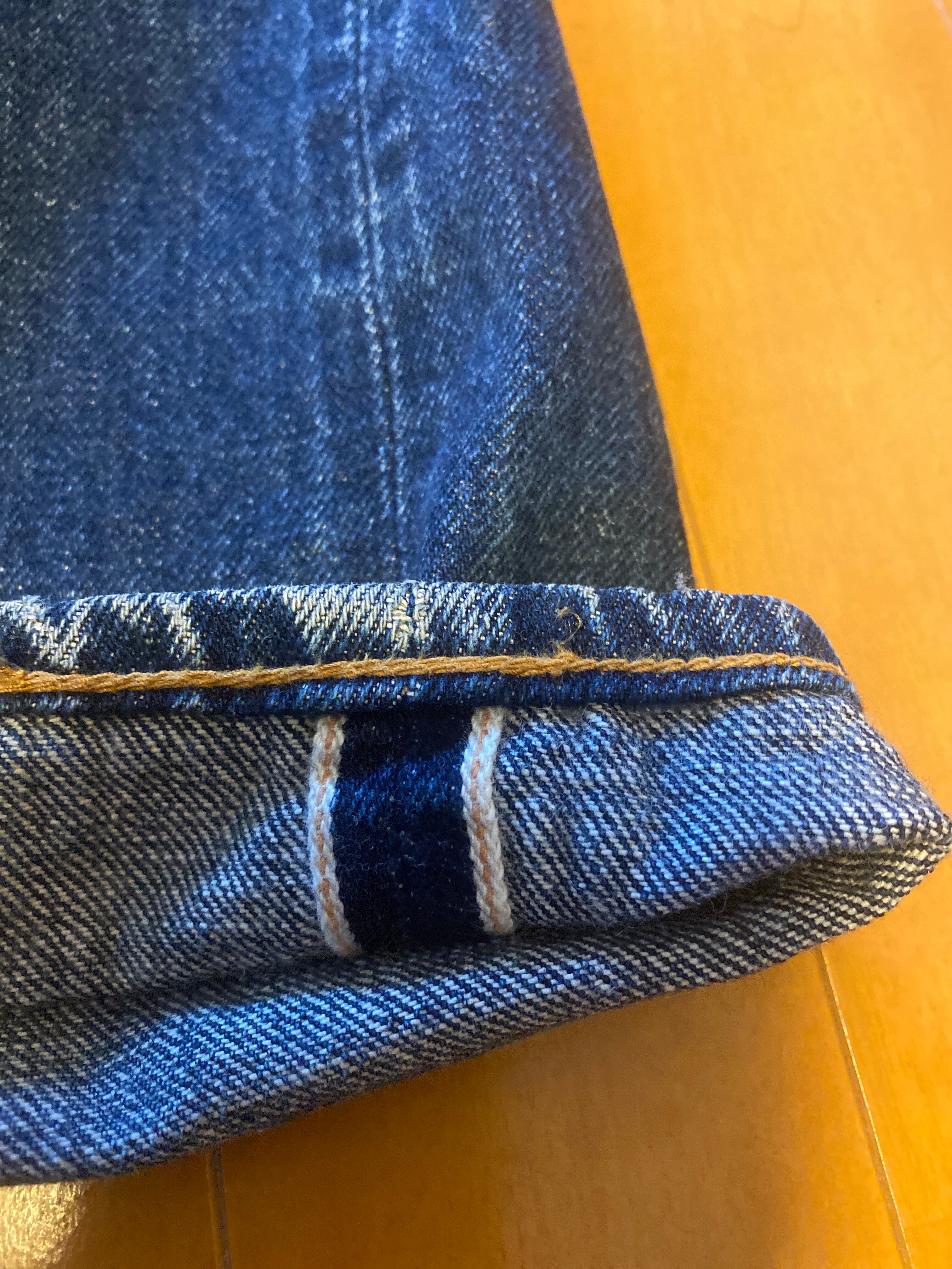 膝やヒップ周りには、手作業で施されたリペアがあり、